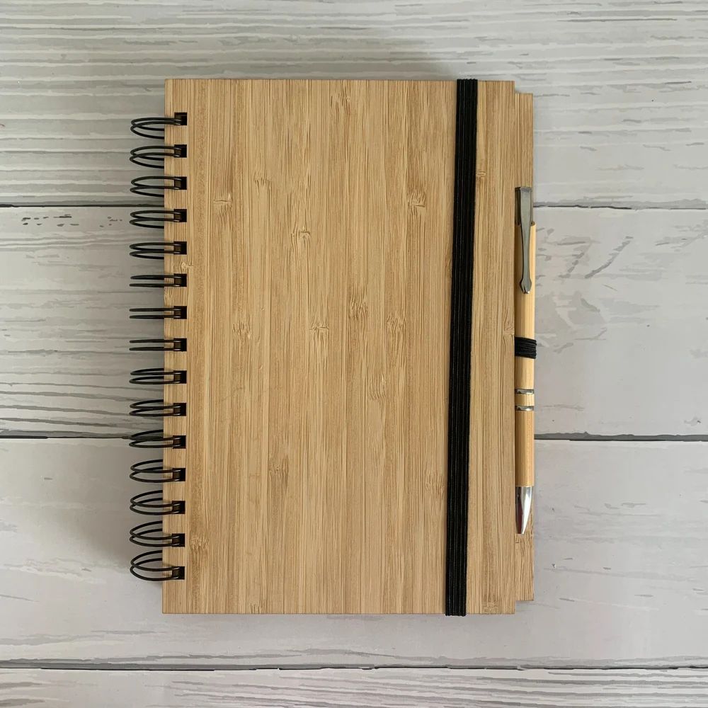 Elegant diary with bamboo cover and premium recycled paper. Natural texture and sustainable design for conscious professionals.